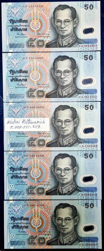 ธนบัตร ร.9 ราคา 50 บาท ผ่านใช้ โพลิเมอร์กาญจนาฯ +แบบ16เลขสวย รวม 4 ใบ |