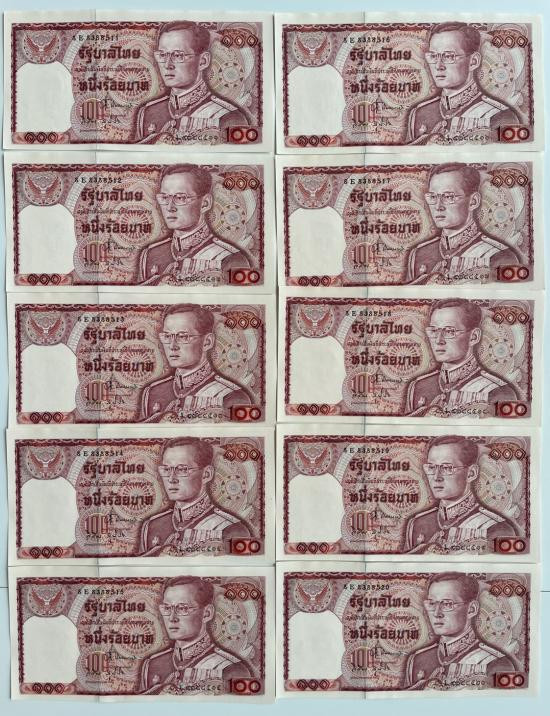 ธนบัตร 10 บาท แบบ 12 (ทรงม้า) จำนวน 100 ใบเรียง รัชกาลที่ 9 สภาพตามรูป |