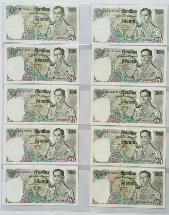 ธนบัตร 20 บาท รัชกาลที่ 9 หลังเรืออนันตนาคราช แบบ 11 จำนวน 10 ใบ สวย ไม่ผ่านการใช้งาน เดิมๆ |