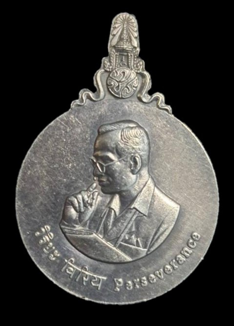 เหรียญแพรแถบแจกกรรมการ งานฉลอง 25 พุทธศตวรรษ เนื้อเงินกะไหล่ทอง พ.ศ.2500 จำนวน 1 เหรียญ |