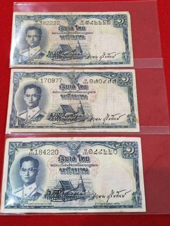 ## ธนบัตร 1 บาท ## โทมัส ## หน้าหนุ่ม ## เลขแดง ## 3 ฉบับ ## หม่อมหลวงเดช สนิทวงศ์ ## |
