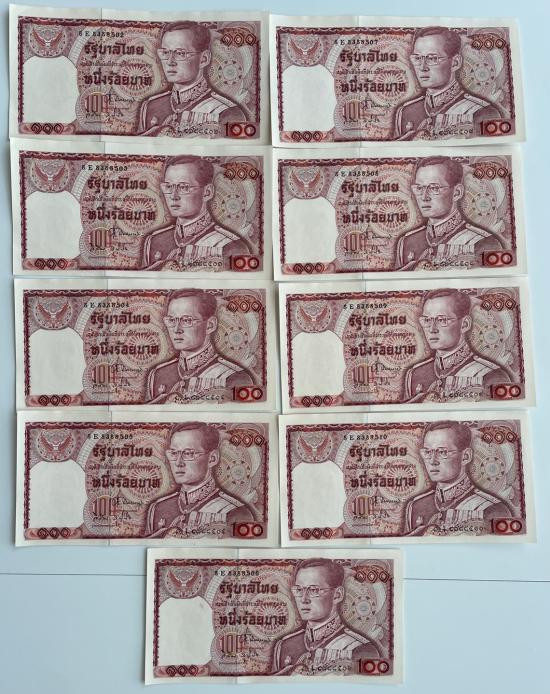 ธนบัตร 100 บาท รัชกาลที่ 9 แบบ 12 ช้างแดง จำนวน 9 ใบ สวยใหม่กริ๊บเลขแหนบ |