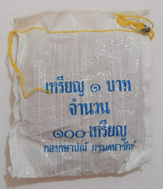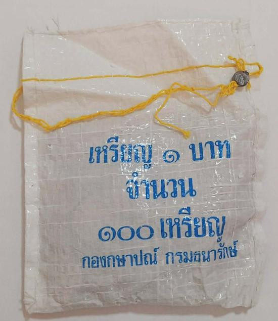 เหรียญ 1 บาท ฉลองสิริราชสมบัติครบ 50 ปี กาญจนาภิเษก พ.ศ.2539 ยกถุง 100 เหรียญ จำนวน 1 ถุง ซีลเดิม ตะกั่วอยู่ครบ ถุงปิดไม่เคยเปิดออก #4# |