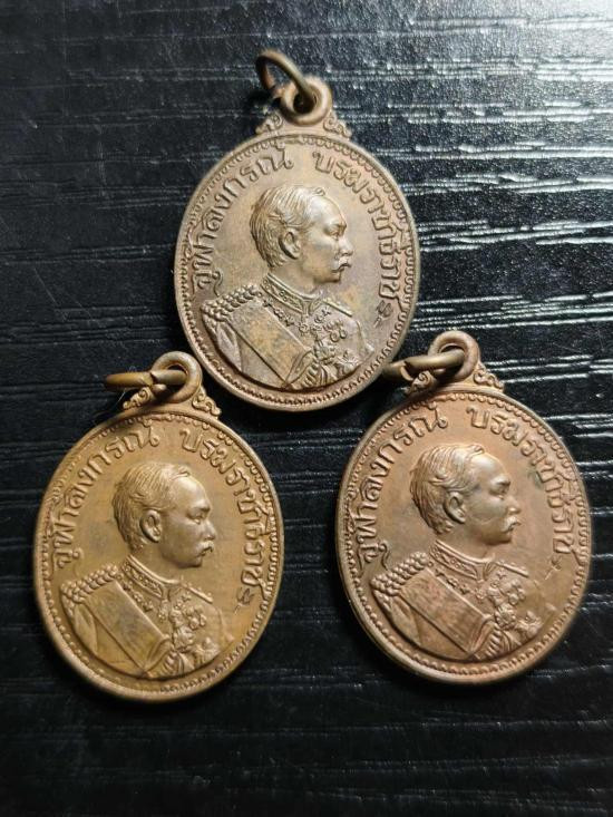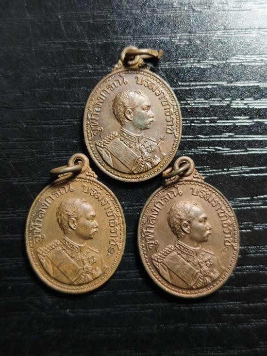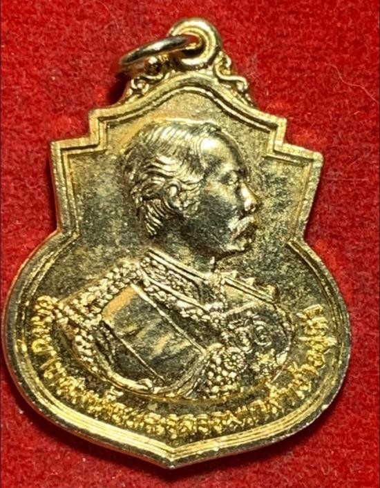 เหรียญรัชกาลที่ 5 จัดสร้างโดยหลวงพ่อลมูล วัดเสด็จ จ.ปทุมธานี ปี 36 เนื้อกะไหล่ทอง |