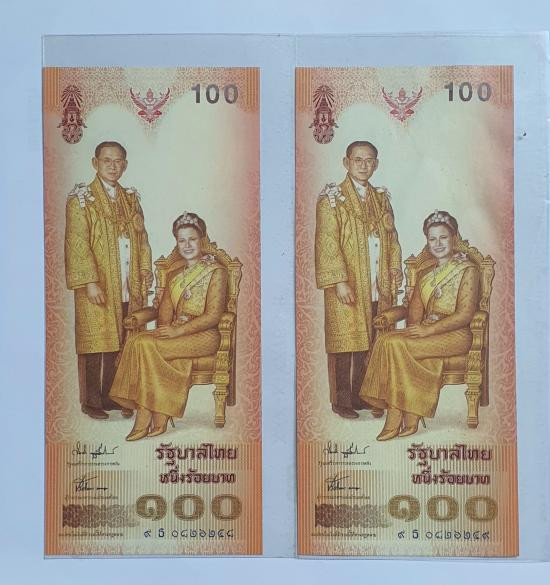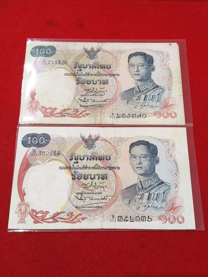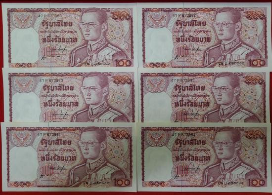 ธนบัตร 100 บาท ร.9 แบบ 12 หลังช้างแดง เลข 6หลัก หายาก เลขเรียง 6ฉบับ UNC สภาพใหม่ สวย |