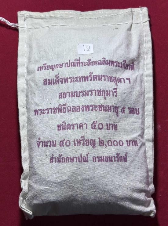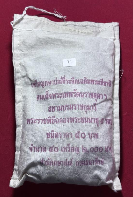 เหรียญ 50 บาท รัชกาลที่9 ที่ระลึกสมเด็จพระเทพรัตนราชสุดาฯ พระราชพิธีฉลองพระชนมายุ 5 รอบ จำนวน 40 เหรียญ สภาพสวยตามรูป พร้อมถุงเดิม (ถุงมีตำหนิตามรูป) |