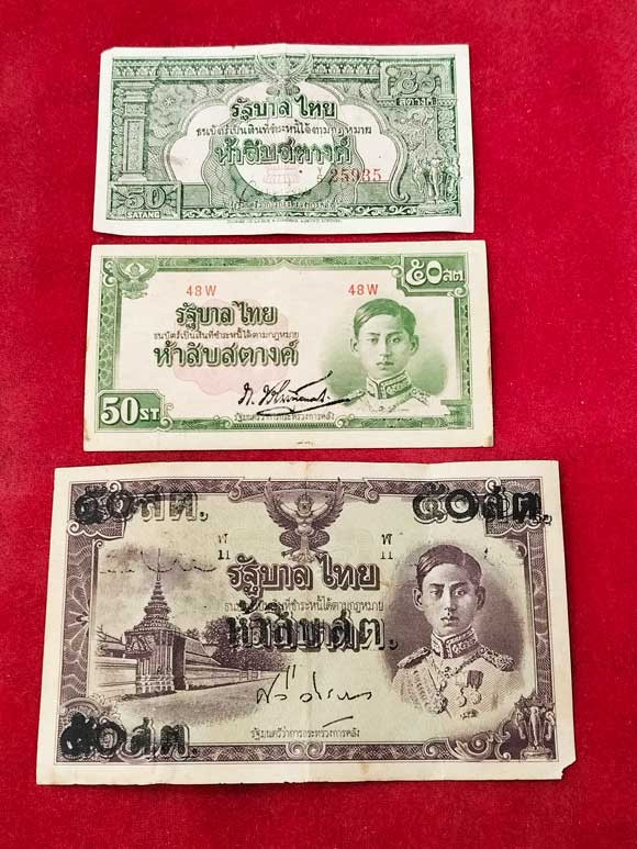 วัดใจ เคาะเดียว 2 ฉบับ ธนบัตรชนิดราคา 50 สตางค์ 2 รุ่น ประกอบด้วยรุ่นลายไทย และรุ่น แบบที่ 5 ผลิตที่ญี่ปุ่น สมัย ร.8 ปี 2488 หายากทั้งสองรุ่น |