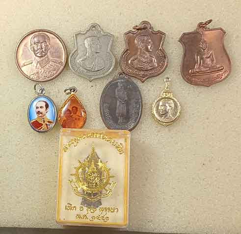 เหรียญ+ ล็อกเก็ต ร.5 +เหรียญ 2 เหรียญ + ล็อกเก็ต ร.9 +เหรียญสมเด็จพระนางเจ้าสิริกิติ์ +เหรียญสมเด็จเจ้าฟ้ากรมหลวงเพชรบุรีฯ+หลวงพ่อทองคำ วัดไตรมิตร หลังตรา ภปร.พระพุทธนราวันตบพิตร+ |