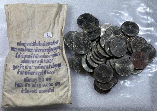 เหรียญที่ระลึกชนิดราคา 20 บาท ที่ระลึกในโอกาสที่สำนักงานโครงการพัฒนาแห่งสหประชาชาติ (UNDP) ทูลเกล้าฯ ถวายรางวัลความสำเร็จสูงสุดด้านการพัฒนามนุษย์ จำนวน 45 เหรียญ สภาพสวยตามรูป |