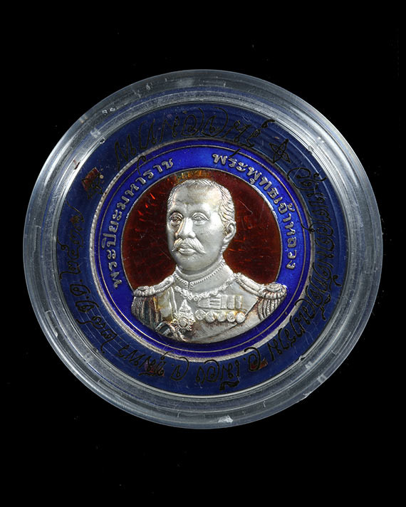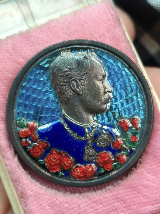 เคาะเดียว+ เหรียญ รัชกาลที้5 ทรงจอมทัพเรือ "เนื้อเงิน ลงยา" วัดหัวลำโพง ปี2537 |