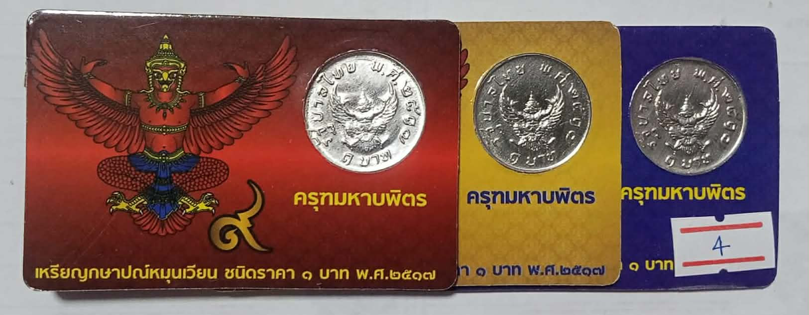 เหรียญ 1 บาท หลังพญาครุฑ เหรียญบาทประสบการณ์ พกติดตัวไว้เป็นมงคล เหรียญสภาพผ่านการใช้งานสวย พร้อมการ์ด สีแดง,สีน้ำเงิน,สีเหลือง จำนวน 3 เหรียญ ครับ #3# |