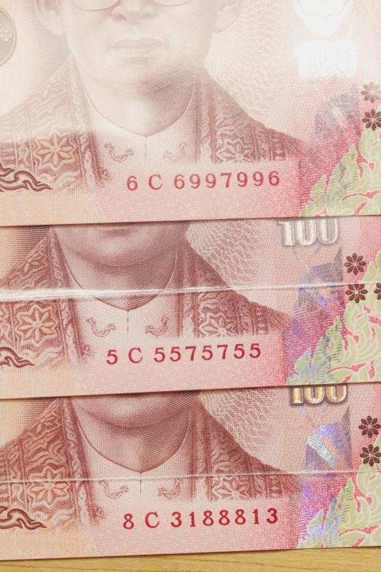 ธนบัตร 100 บาท รัชกาลที่ 9 เลขกระจก 3 ใบไม่ผ่านการใช้งาน |