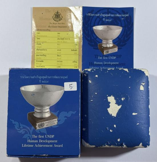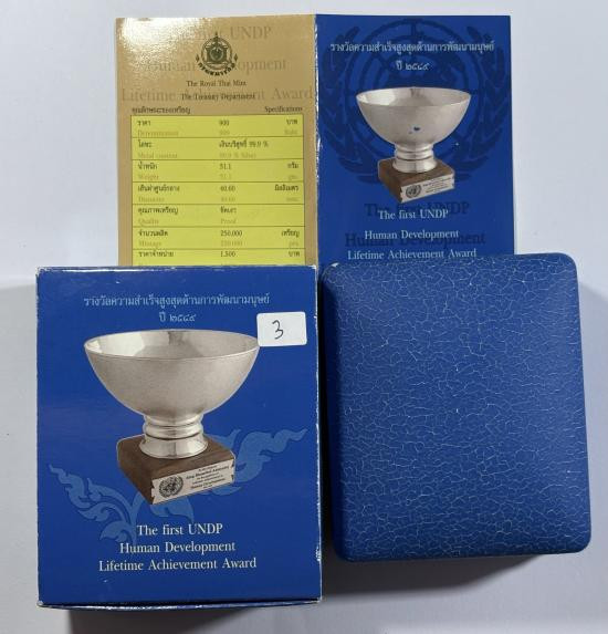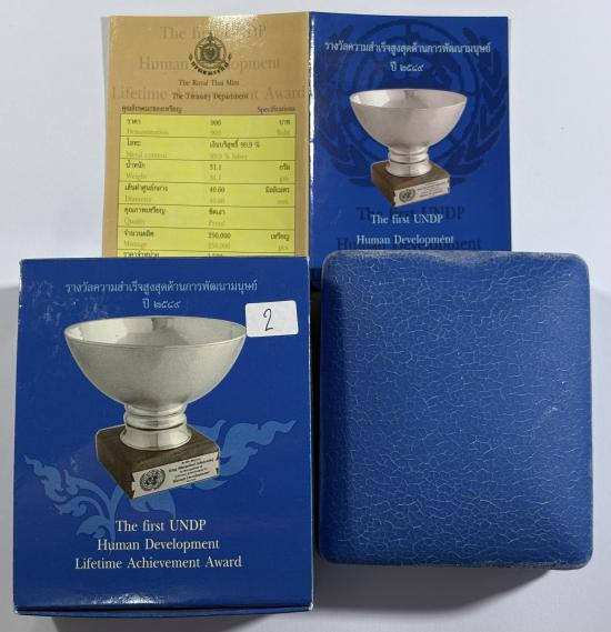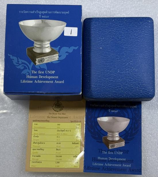 เหรียญเงิน 900 บาท เงินพิมพ์สี UNDP จำนวน 1 เหรียญ พร้อมกล่อง+ใบเซอร์ สภาพสวยตามรูป |
