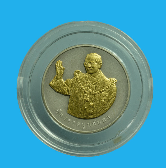 เหรียญพระบรมรูปรัชกาลที่ 9 หลัง ภปร. คณะสงฆ์สร้างถวายในวาระฉลองพระชนมครบ 4 รอบ ปี 2518 |
