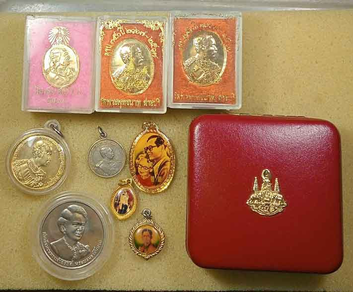 เหรียญร.5 5 เหรียญ + เหรียญร.9 +ล็อกเก็ต ร.9 3 องค์ + สมเด็จพระนางเจ้าสิริกิติ์ |