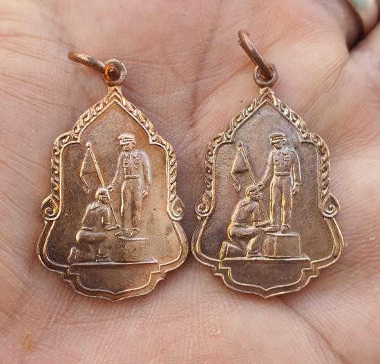 เหรียญวัดชลอ รุ่น ๑ ด้านหลังร.9 ทรงผนวช จ.นนทบุรี ปี 2515 + เหรียญพระชัยหลังช้าง |