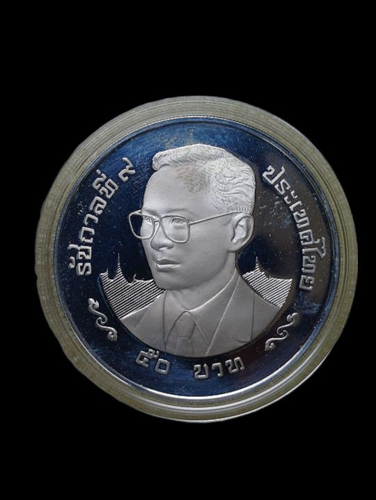 เหรียญที่ระลึกพระราชพิธีถวายพระเพลิงพระบรมศพ พระเจ้าอยู่หัวรัชกาลที่ 9 เนื้อเงิน สภาพสวยพร้อมกล่อง |