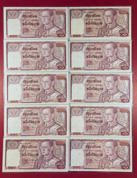 ธนบัตร 100 บาท รัชกาลที่ 9 แบบ 12 ช้างแดง จำนวน 10 ใบ สวยใหม่กริ๊บ |