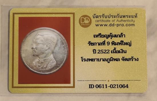 **เคาะเดียว**เหรียญคุ้มเกล้า ร.9 เนื้อเงิน พิมพ์ใหญ่ ปี2522 +บัตร หลวงปู่โต๊ะและเกจิร่วมปลุกเสกจำนวนมาก |