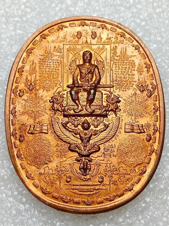 เหรียญ ร9 เนื้อทองแดง หลังพระพุทธชินราช เลี่ยมทอง |