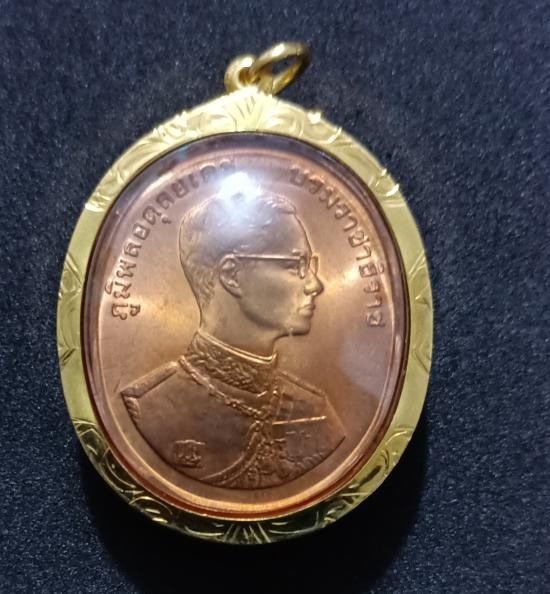 เหรียญ ร9 ทรงผนวช เนื้อทองแดง เลี่ยมทอง |