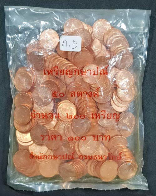 ::เหรียญใหม่ UNC รัชกาลที่9 ปี2559 ถุงซีลเดิม ราคาเหรียญ 50 สตางค์ X 200เหรียญ รวม 100 บาท:: แพ็คที่.ก.5 <<<เหรียญถ่ายจากเหรียญจริงไม่ได้ตกแต่งรูปแต่ประการใด>>> |