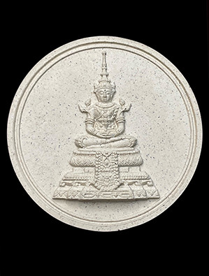 พระแก้วมรกต ทรงเครื่องฤดูร้อน เนื้อผง พิมพ์กลม ใหญ่ 5 ซ.ม. วัดพระแก้ว สำนักพระราชวัง ปี 2550 กล่องเดิม สวยๆ |