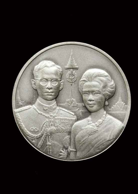 *เคาะเดียว* เหรียญในหลวง-ราชินี ที่ระลึกครบ 50 ปี ราชาภิเษกสมรส ปี2543 (((เนื้อเงิน))) กล่อง+ใบ |