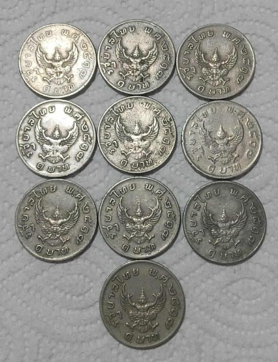 เหรียญ 1 บาท หลังครุฑ พ.ศ.2517 ในสมัย รัชกาลที่ 9 พกติดตัวไว้เป็นมงคล เหรียญสภาพผ่านการใช้งานผิวเดิม จำนวน 10 เหรียญ ครับ #1# |