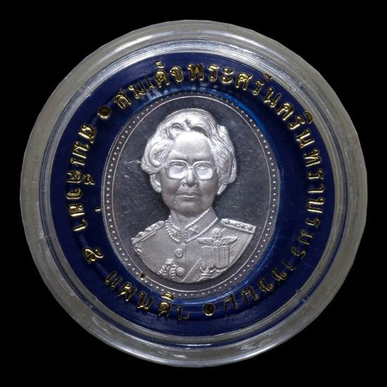 เหรียญสมเด็จย่า 5 แผ่นดิน เนื้อเงินขัดเงา พร้อมตลับ แดงเคาะแรก |