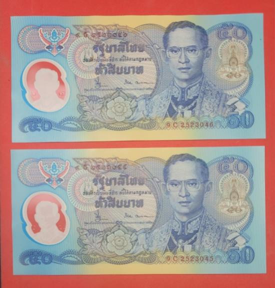 ธนบัตร 50 บาท กาญจนาภิเษก 2 ฉบับ เลขเรียง |