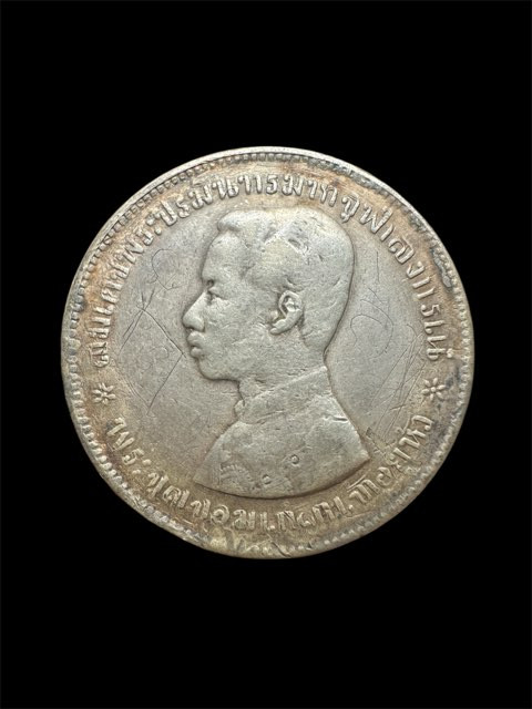 เหรียญหนึ่งบาท ร.5 เนื้อเงิน มีจารเก่าครับ |