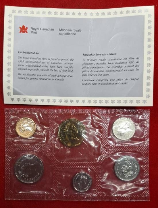 ชุดเหรียญกษาปณ์แคนาดาที่ไม่ได้หมุนเวียน (Uncirculated Set) ของปี 1995 ซึ่งผลิตโดยโรงกษาปณ์แคนาดา (Royal Canadian Mint |