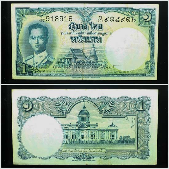 ธนบัตร 1บาท โทมัส ร.8 เลขแดง พ.ศ. 2479 ลายเซ็น พระยาไชยยศสมบัติ |