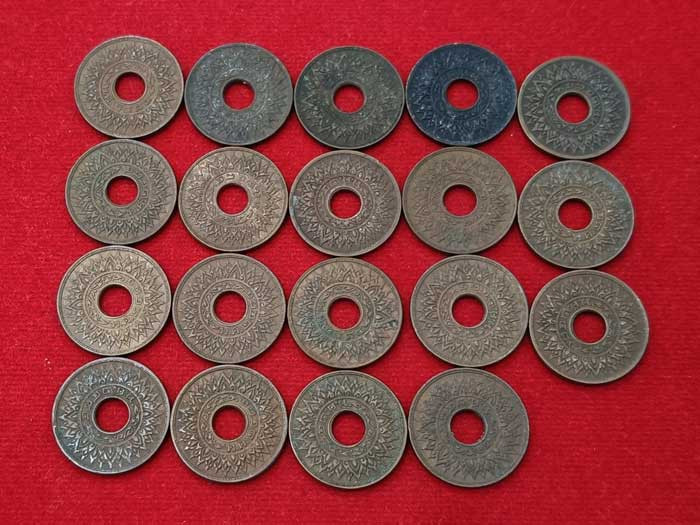 แดง100บาท เหรียญ อัฐอันเฟื้อง รัชกาลที่ ๕ พระนามาภิไธย์ย่อ จปร. |