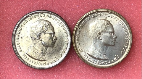 เหรียญที่ระลึกในหลวงรัชกาลที่ 9 หลังเขาชีจรรย์ กรมธนารักษ์ จัดสร้าง ปี 2538 เหรียญแท้ทำกะหลั่ยทองเงา/3 กษัตริย์ สภาพสวยมาก ทั้งหมด2เหรียญ+กลองเดิม |
