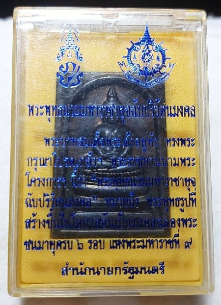 เหรียญพระพุทธนวมมหาราชายุจฉับปริวัตนมงคล ในหลวงรัชกาลที่ 9 ทรงพระราชทานนามอันหมายถึง พระพุทธรูปที่สร้างขึ้นในโอกาสอันเป็นมงคลฉลองพระชนมายุครบ 6 รอบแห่งพระมหาราชที่ 9 (72 พรรษา)สำนักนายกรัฐมนตรี พร้อมก |