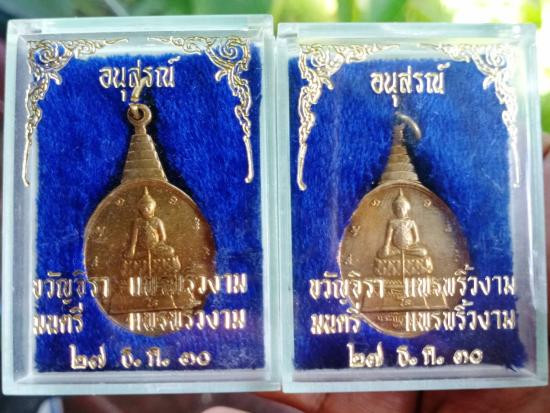 พระชัยวัฒน์ 90 พรรษา สมเด็จย่า ปี พ.ศ.2533 เนื้อนวโลหะ ตอกโค๊ต "สว" ใต้ฐาน กล่องเดิม สวยๆ |