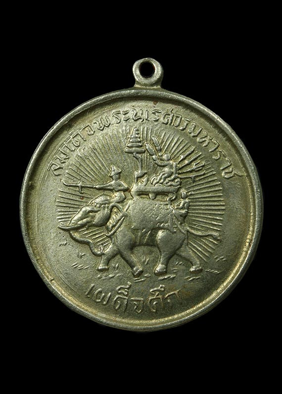 เหรียญพระนเรศวรมหาราช หลังช้างยุทธหัตถี ที่ระลึกรัชกาลที่ ๙ เสด็จเปิดศาลสมเด็จพระนเรศวรมหาราช ปี ๒๕๑๔ |