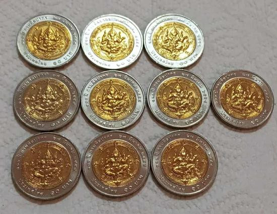 เหรียญที่ระลึก 10 บาทวาระ 100 ปีกรมศิลปากร ด้านหลังเป็นรูปพระพิฆเนศ เทพแห่งความสำเร็จ สภาพไม่ผ่านการใช้งาน UNC จำนวน 10 เหรียญ ครับ |