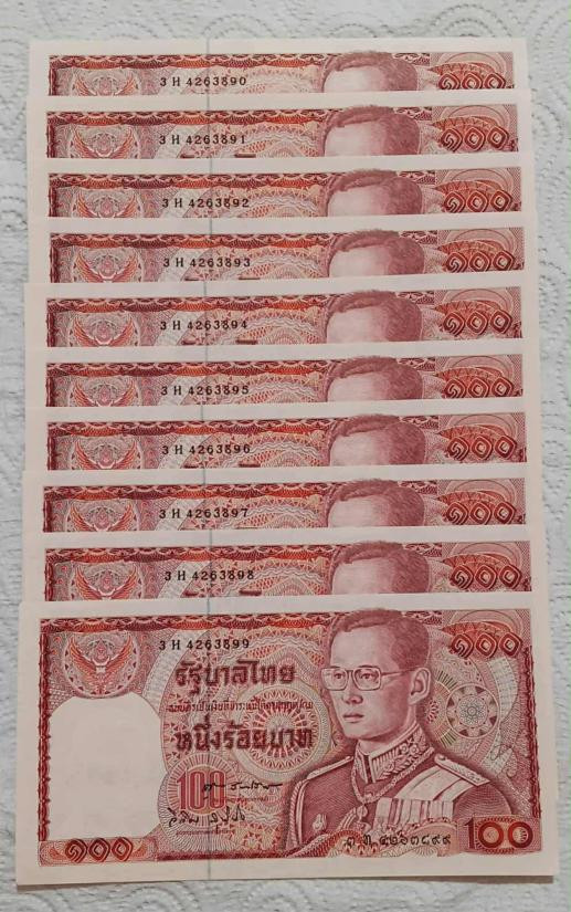 # ธนบัตร 100 บาท ## ช้างแดง ## เลขเรียง 10 ใบ ((เลข 7 หลัก)) ไม่ผ่านการใช้งานสวยกริป ไม่พับ ไม่ยับ ไม่ติดสนิม ไม่เหลือง จำนวน 10 ฉบับ ครับ |