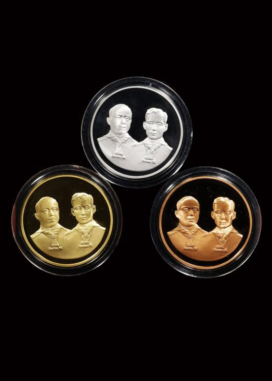 *เคาะเดียว ชุด 3 เหรียญ* เหรียญร.6-ร.9 ที่ระลึกงานชุมนุมลูกเสือโลกครั้งที่ 20 ปี2546 (((เนื้อเงิน + ทองชุบ + ทองแดง ขัดเงา))) |