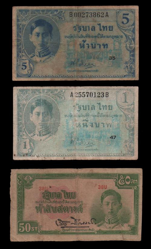 วัดใจ เคาะเดียว 3 ฉบับ ธนบัตรในหลวงรัชกาลที่ 8 ชนิดราคา 50 สตางค์ , 1 บาท และ 5 บาท |