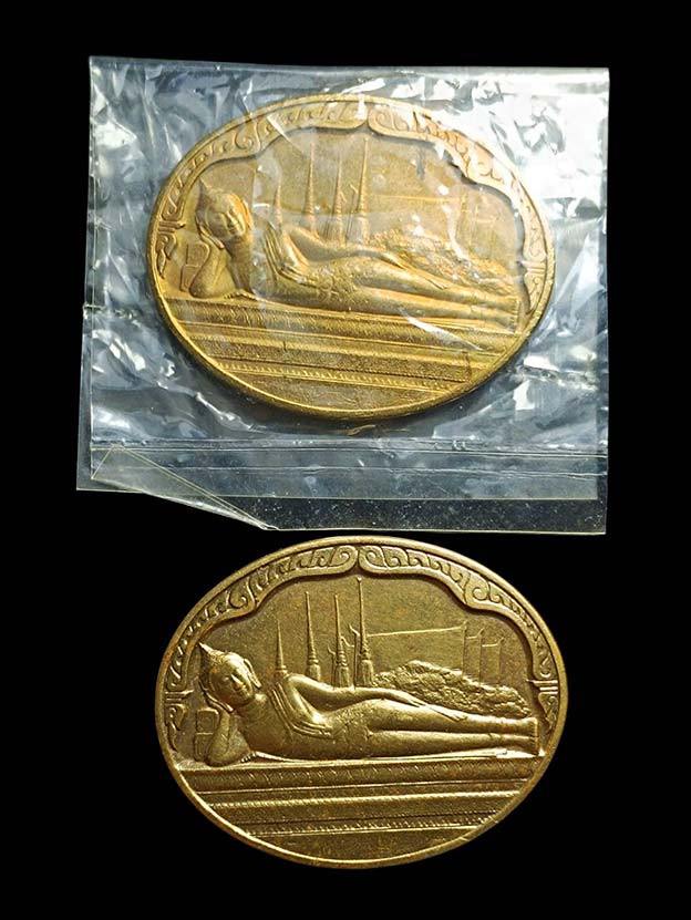 จำนวน 2 องค์ เหรียญพระนอน วัดโพธิ์ หลัง "ภปร." มหามงคลเฉลิมพระชนมพรรษาครบ 5 รอบ 5 ธันวาคม ปี 2530 ซีลเดิม 1 องค์ |