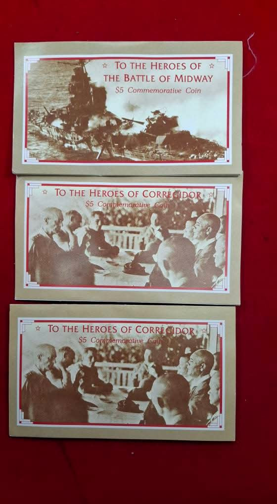 เหรียญที่ระลึก 5 ดอลลาร์ "TO THE HEROES OF CORREGIDOR" ซึ่งเป็นเหรียญที่ระลึกถึงวีรบุรุษแห่งคอร์เรฮิดอร์ ทั้งหมด3เหรียญ |