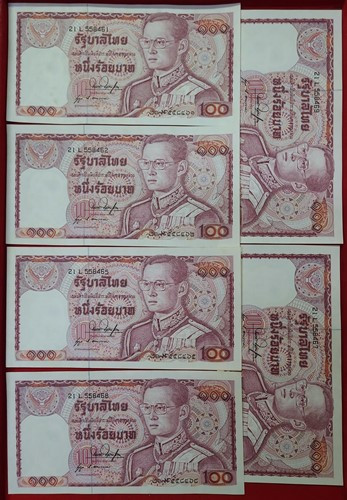 ธนบัตร 100 บาท ร.9 แบบ 12 หลังช้างแดง 6 ฉบับ UNC สภาพใหม่ ไม่ได้ใช้ ไม่มีรอยพับ |