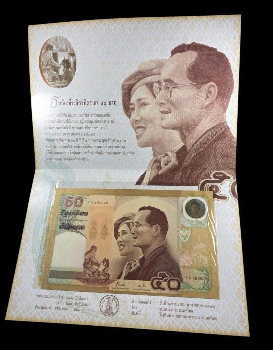 รายการี่ 1 ธนบัตรที่ระลึกชนิดราคา 50 บาท เนื่องในอภิลักขิตสมัยมหามงคลวันราชาภิเษกสมรส ครบ 50 ปี 28 เมษายน 2543 และวันบรมราชาภิเษกครบ 50 ปี 5 พฤษภาคม 2543 สวยๆ ครับ |