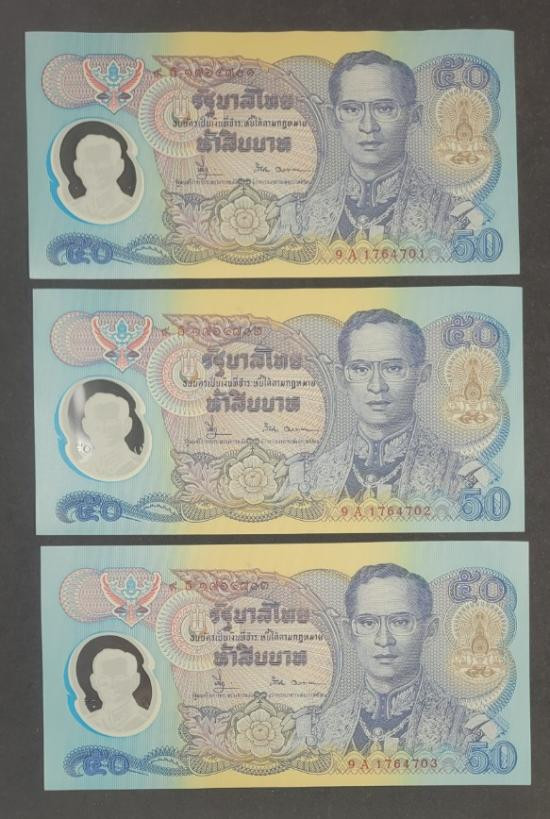 ## ธนบัตร 50 บาท ## 9999 ## 3 ฉบับ ## ไม่ผ่านการใช้ |