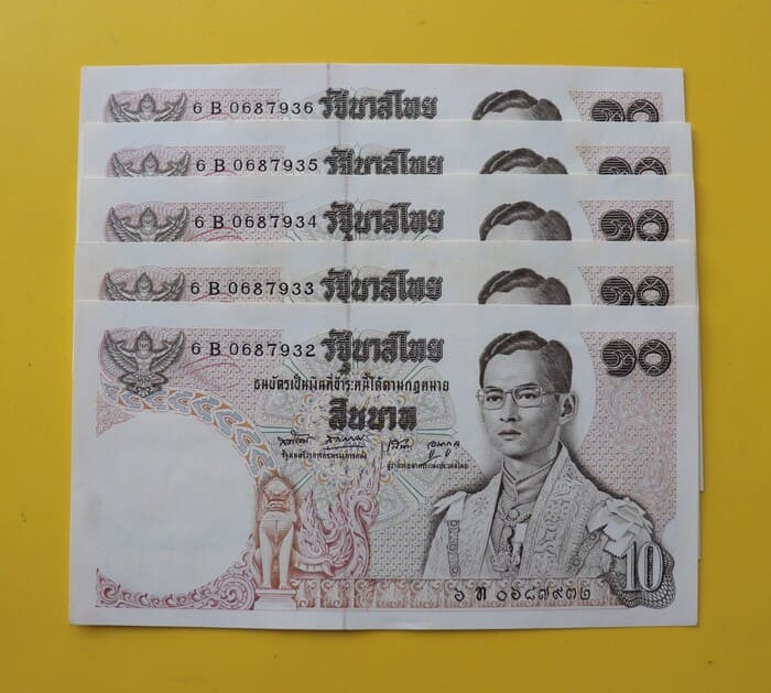 ## ธนบัตร 10 บาท ## ทรงม้า ## 120ปี กระทรวง ## เรียงเลข 5 ฉบับ ## แกะแหนบ ## UNC ## |