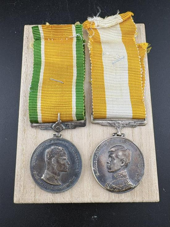 2 เหรียญ ++ เหรียญเงินประดับแพรแถบ รัชกาลที่ 9 ที่ระลึกพระราชพิธีมหามงคล 7 รอบ เนื้อเงิน ปี2554 |